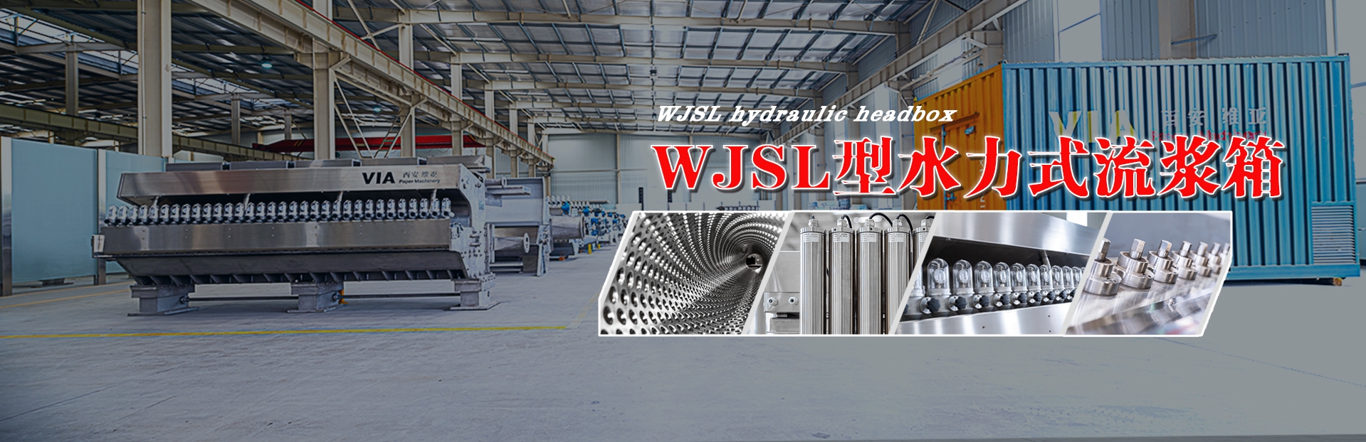 WJSL型水力式流漿箱適應(yīng)車速范圍在500-1200M/MIN。漿料經(jīng)錐形布漿總管與階梯變化的管束沿紙機(jī)寬度方向均勻布漿。稀釋水在漿料進(jìn)入階梯管束前被注入到漿流中調(diào)節(jié)漿流濃度,實(shí)現(xiàn)對(duì)紙張橫向定量的局部微調(diào),改善整幅紙業(yè)橫幅定量的目的。